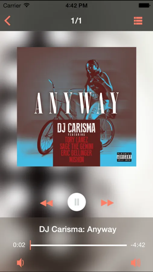 - Listen to Carisma's tracks wherever you are using Wifi or data