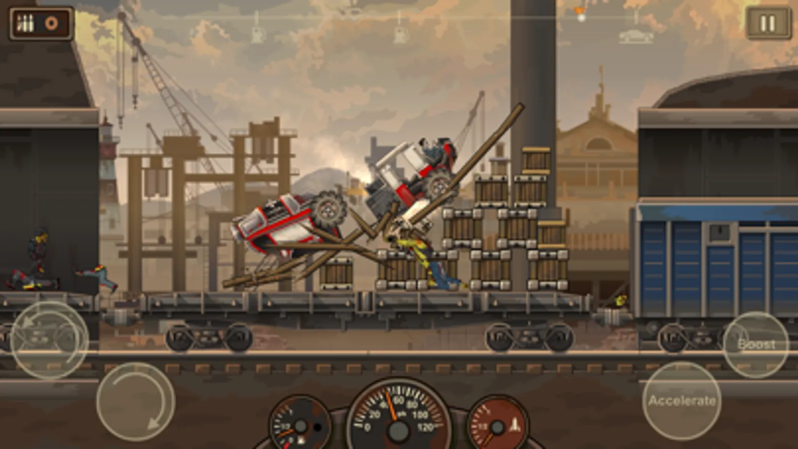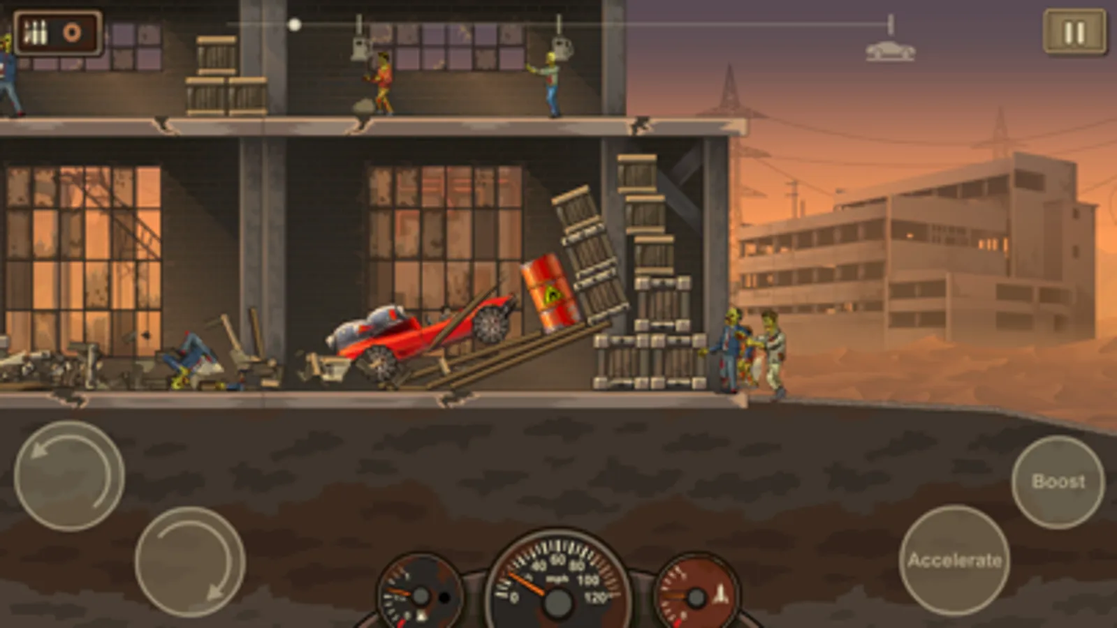 ● Multi-Tiered Levels: Drive across decayed highway overpasses, via underground tunnels or smash through epic zombie filled factories