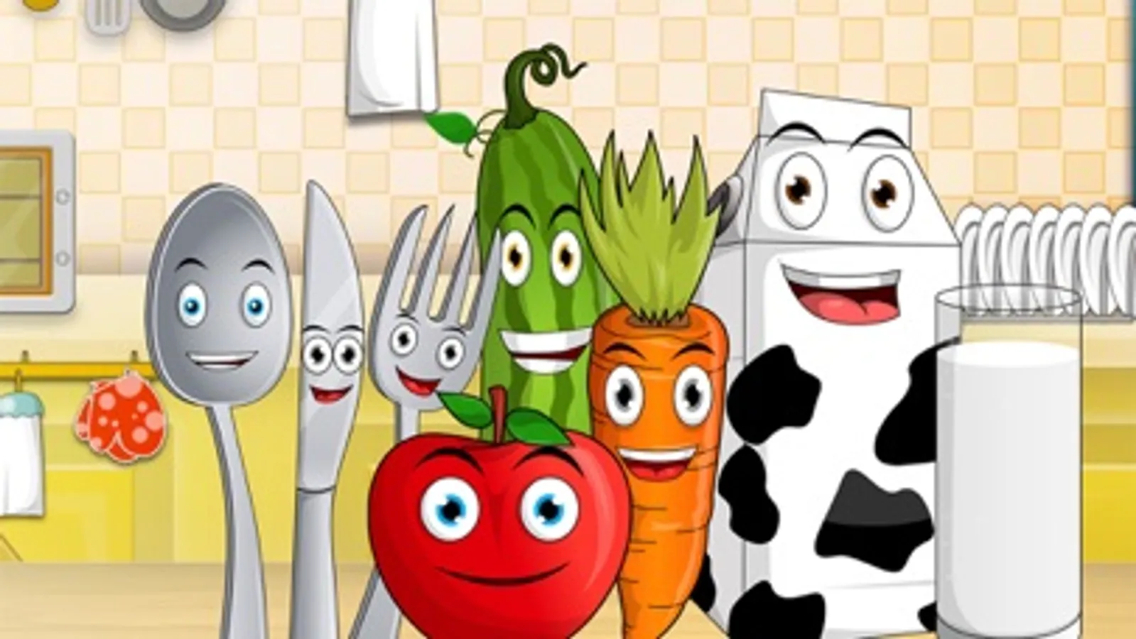 - Simple navigation for small children. Even babies may be able to use the app and have great fun exploring the things in the fridge, cupboard and on the kitchen table.