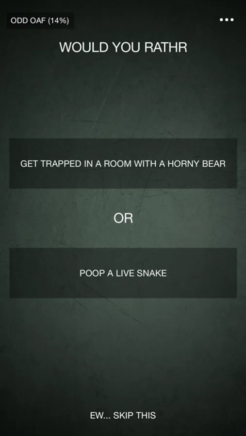 Rathr is a hilariously filthy game to test yourself on just how disturbed you are. It’s a twist on the classic “Would you rather” game but with cringe-worthy adult-themed choices, many inspired by the deliciously despicable game Cards Against Humanity. Gag through the questions and discover just how sick you really are while seeing how you stack up with other disturbed people.