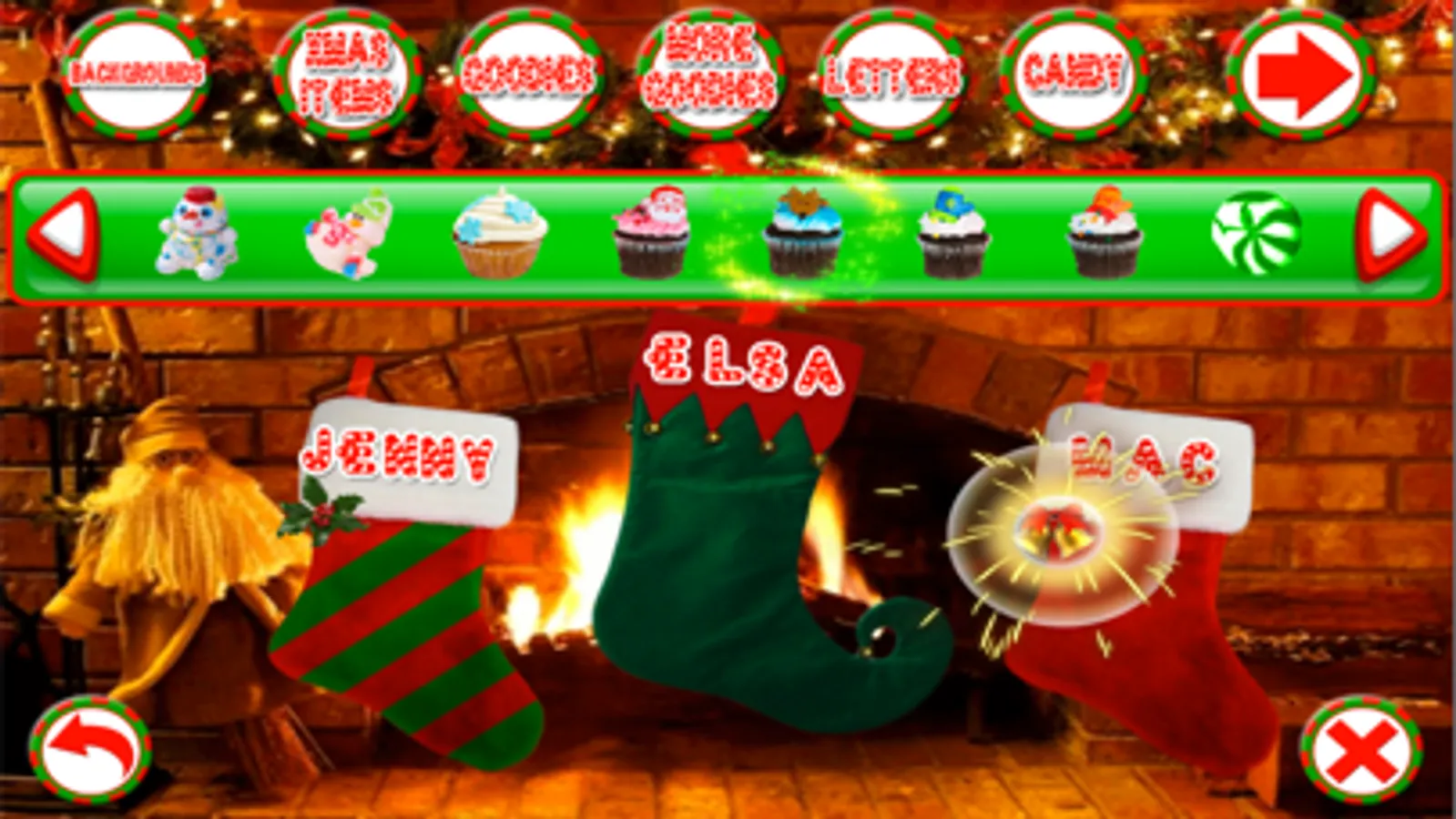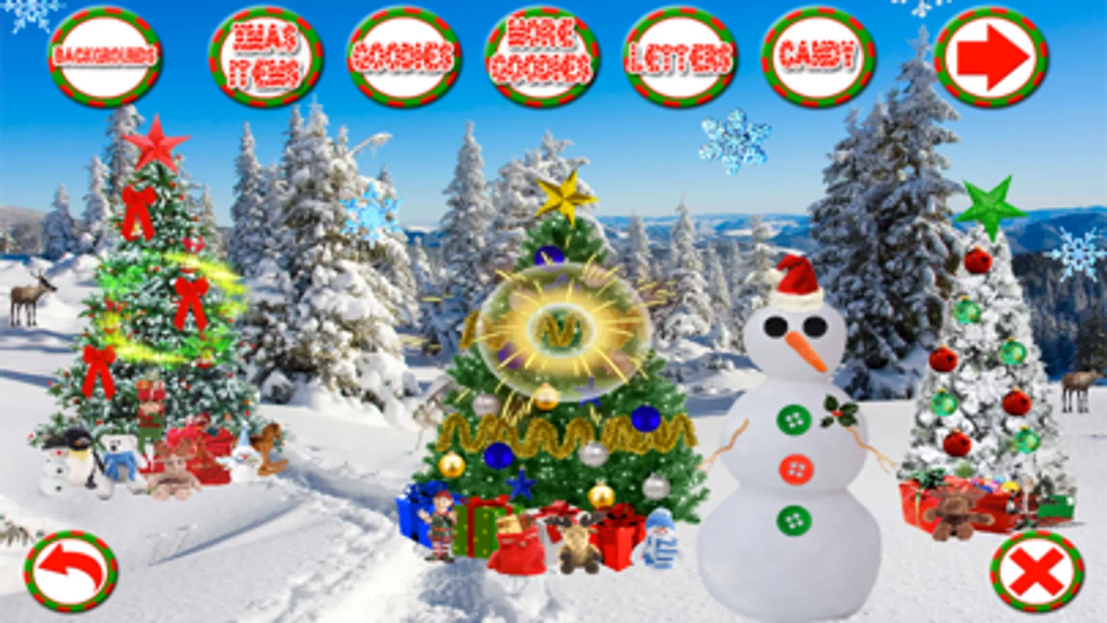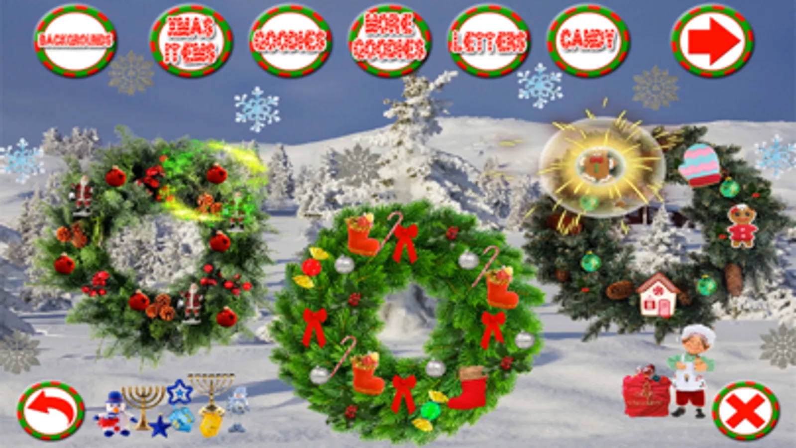 Select a background and decorate with 150+ Holiday themed items like Reindeer, Santa, Toys, Candy, Garland, Bells, Elf, Presents, Christmas Ornaments, Cookies, Gold Star, Cupcakes, Bows, Candy Canes, Gingerbread, Menorah, Dreidel, frozen Icicles, Stockings, Elves and more!