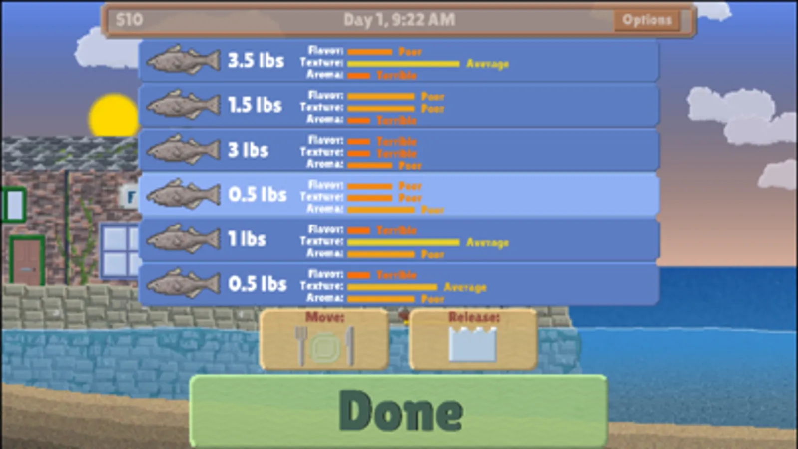 Take your boat out onto the high seas to find and catch fish for your customers. Better quality fish means higher reviews for your shop, more customers, and more money!