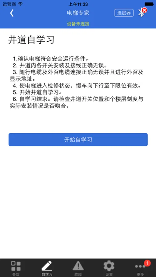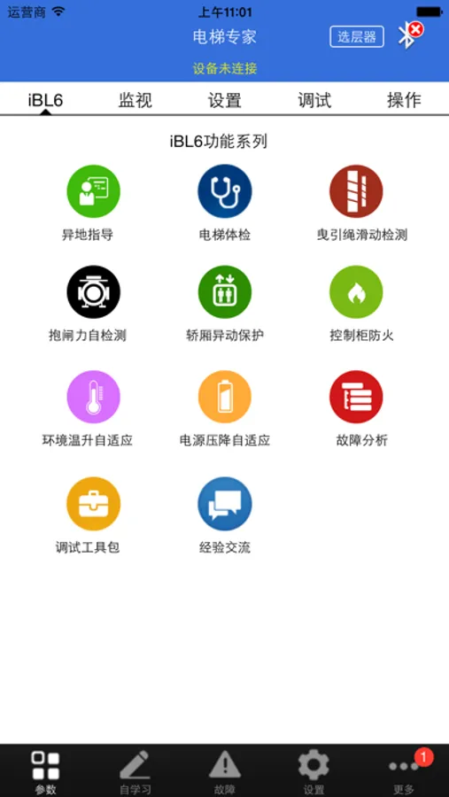 作为IECS(智能电梯核心系统)的调试单元,《电梯专家》应用在电梯调试方面领先一步,通过智能手机替代传统手持操作器,使用无线连接方式,利用手机自有的强大计算能力和丰富的界面资源,配合合理的功能配置,使得电梯调试变的异常容易。软件的使用需要将一个专用“蓝牙模块”插入蓝光一体机的主板,运行“电梯专家“应用后,搜索并连接,接下来便可轻松进行电梯无线调试工作。