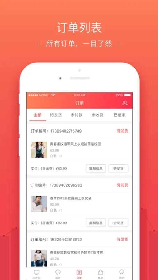 【订单管理】手机发货,跟进售后,处理订单更畅通;