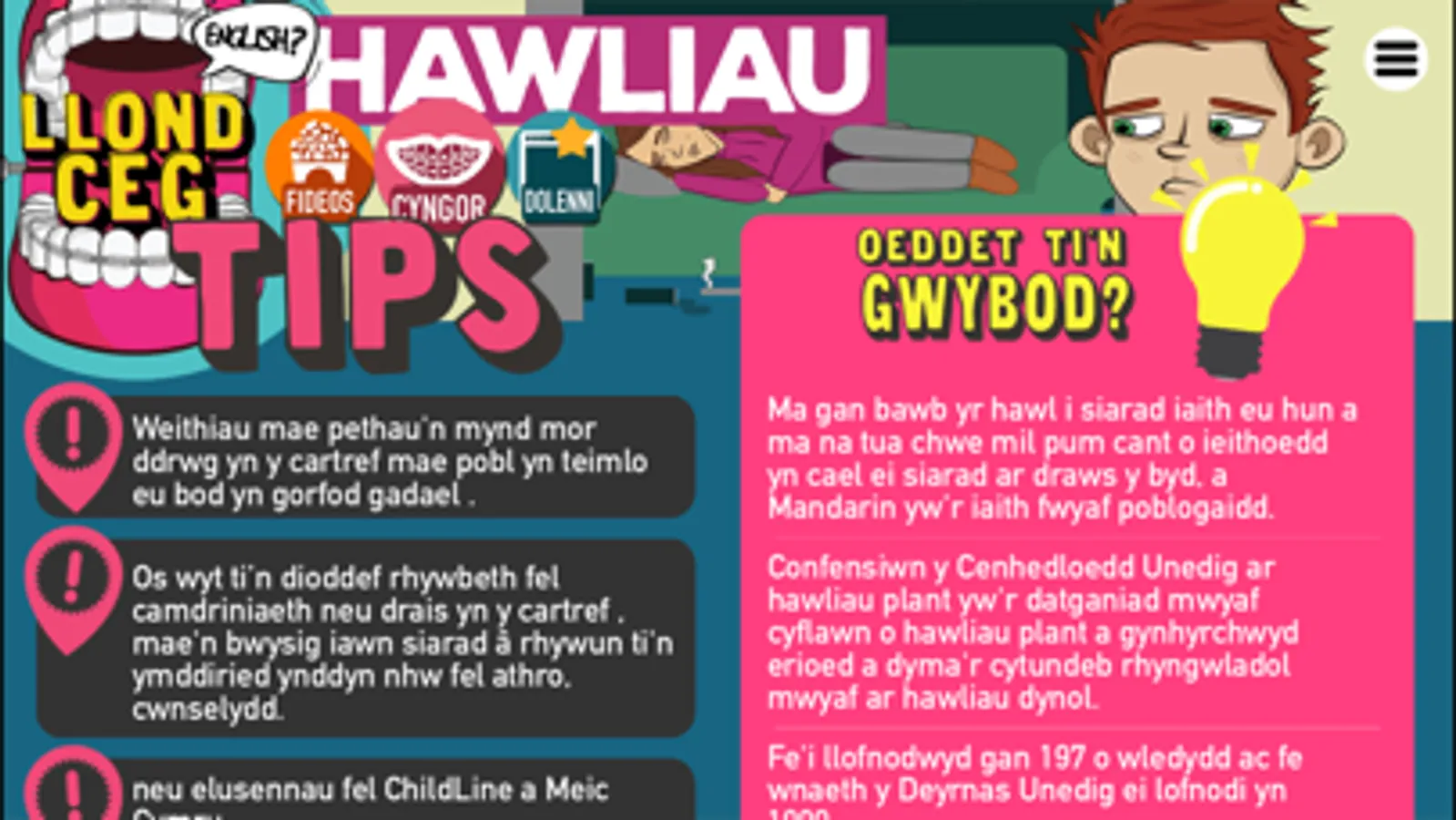 A FREE bilingual Advice App crammed full of help and peer advice about all the things that really matter to young people. From dealing with homework stress to parents getting divorced, sexting to self-harm the app tackles all the BIG and small issues that children are faced with today. Offering lots of useful tips, video clips full of help and advice from young people talking about their own experiences and links to specialist support. Also including animation clips giving YOU the option to make the decision about our characters dilemma in “What should I do?”. Video clips of familiar faces sharing their secret experiences from first kisses to bullying and young Doctors speaking openly about issues such as puberty and health.