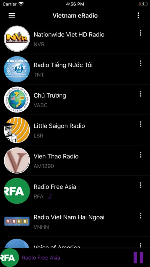 Vietnam eRadio is a free application that lets you listen to online radios in Vietnam. The app provides many radio stations both live and podcast. It is easy to use, and there is no annoyed fullscreen-advertisement.