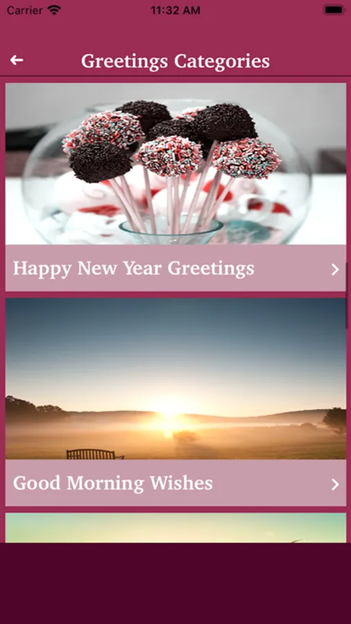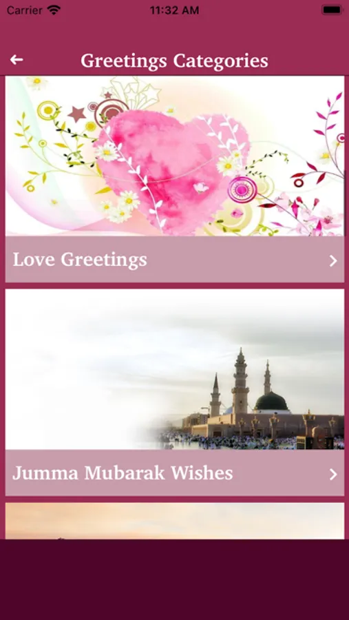 There are lots of Categories in this app as Christmas, New Year, Birthday,Valentine Day, Weddings etc. User can also create his greetings card.