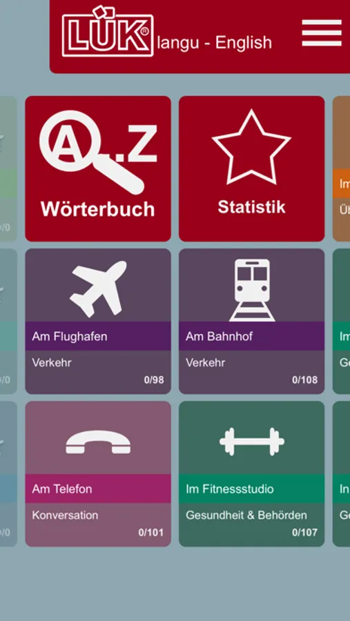 Mit LÜKlangu vertiefen Sie Themen, die im Alltag, auf Reisen oder in der Freizeit, im Gespräch und in beruflichen Zusammenhängen von Bedeutung sind. Ob am Flughafen, im Krankenhaus oder im Restaurant – Sie werden zusehends sicherer im Umgang mit der englischen Sprache und lernen die wichtigsten Vokabeln und Phrasen, um sich in gängigen Alltagssituationen mühelos verständigen zu können.