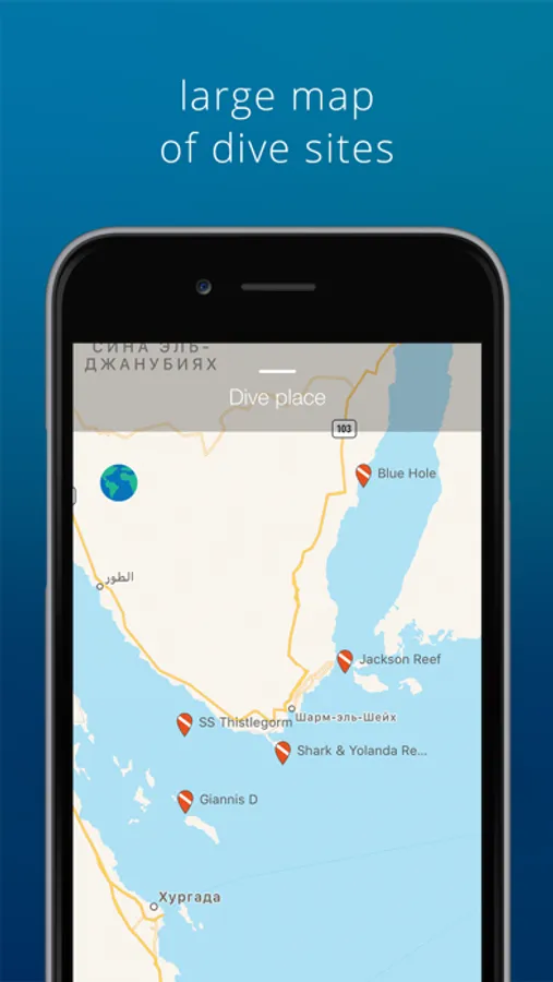 base of dive sites and easy search on the map. Or add your own