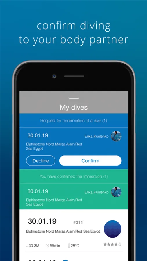 partner you confirm the dive. It's like a stamp or a signature in your paper
