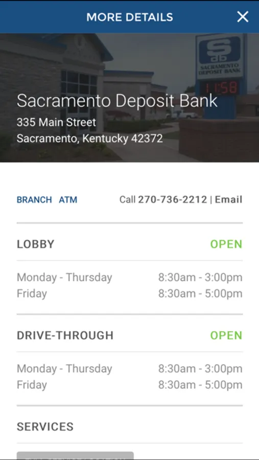 You can contact us at 270-736-2212 if you have any questions about the Sacramento Deposit Bank Mobile App or the self-service registration process.