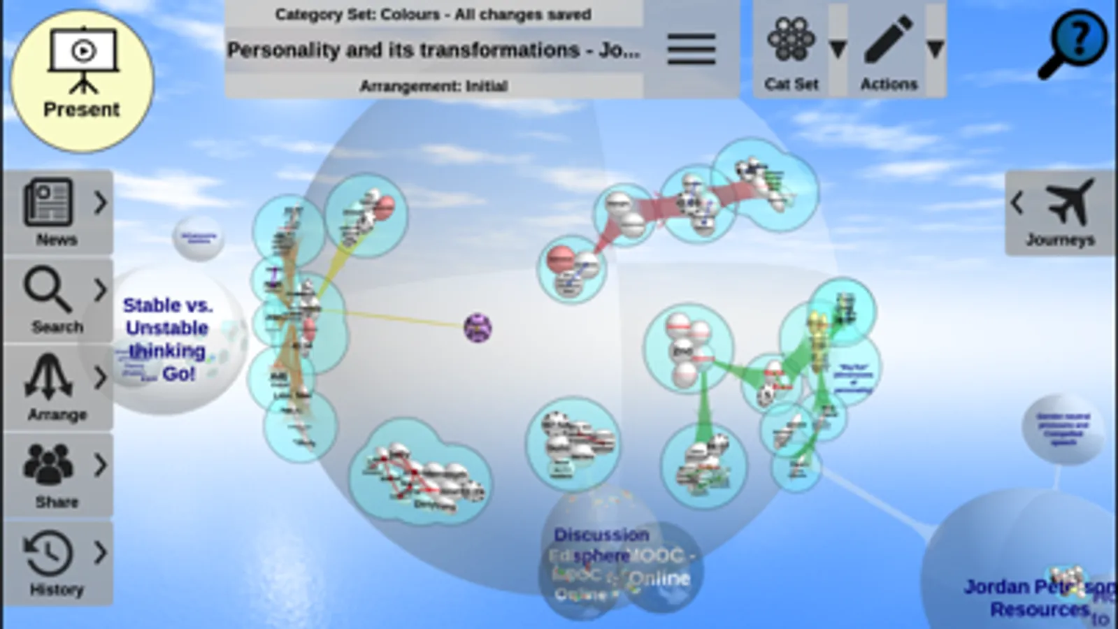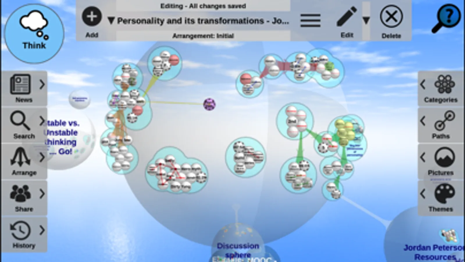 3D visual thinking for creative brainstorming, problem solving, collaborative research and education. Beyond 3D mind mapping – reflecting how minds work.