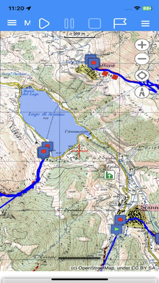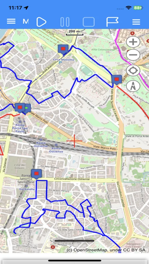 All waypoints, tracks and routes are displayed on the map; the recording track is drawn in real time.