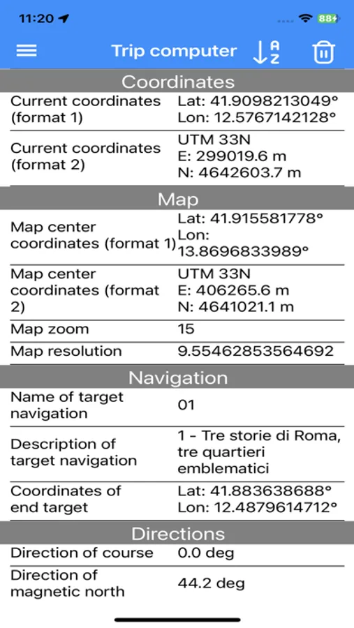 - Coordinates in different datums and formats: Degrees, Degrees-Minutes, Degrees-Minutes-Seconds, UTM, ECEF, OLC, GeoRef, USNG, MGRS, BNG, IG, metrics according to many projections