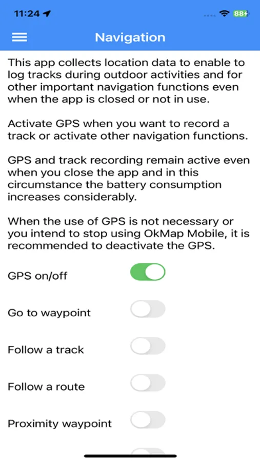OkMap records the tracks even in standby and with the app closed. A notification alerts you when the GPS is working.