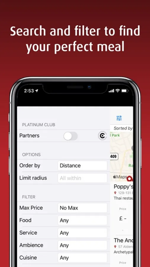 Although you can search for restaurants by name within the free version of the App, its powerful search features and constant updating of its restaurant data are only available to subscribers