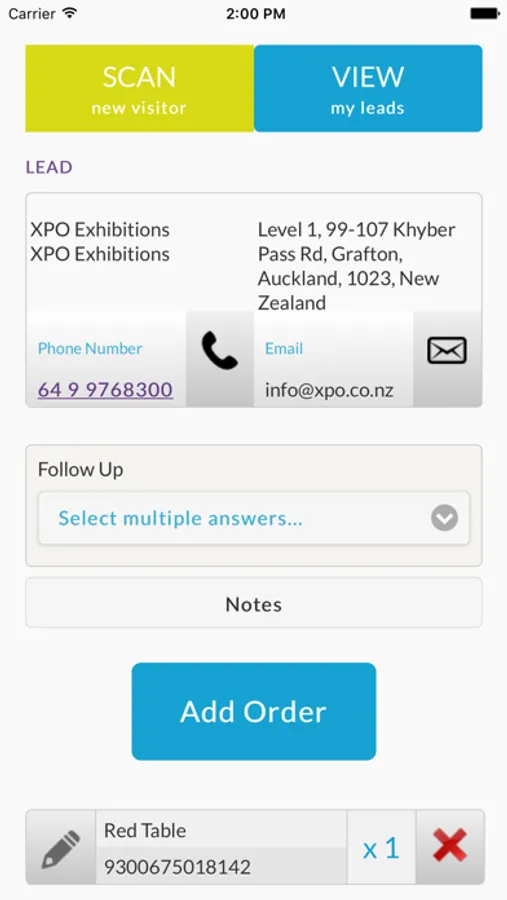 During and post event, log in to your XPO leads web interface and export all your data in a handy excel file complete with prospect names, contact details and orders along with reporting on who scanned the contact.