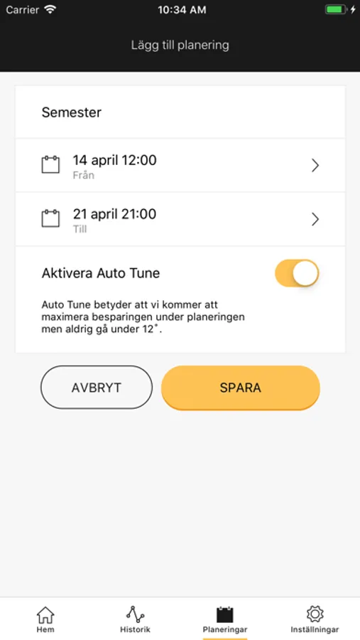 Ngenic Tune is a smart thermostat for your heating system, and our app enables you to control, monitor, plan and check your heating directly from your pocket. You will have complete control over your house – no matter where in the world you are.