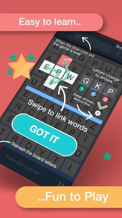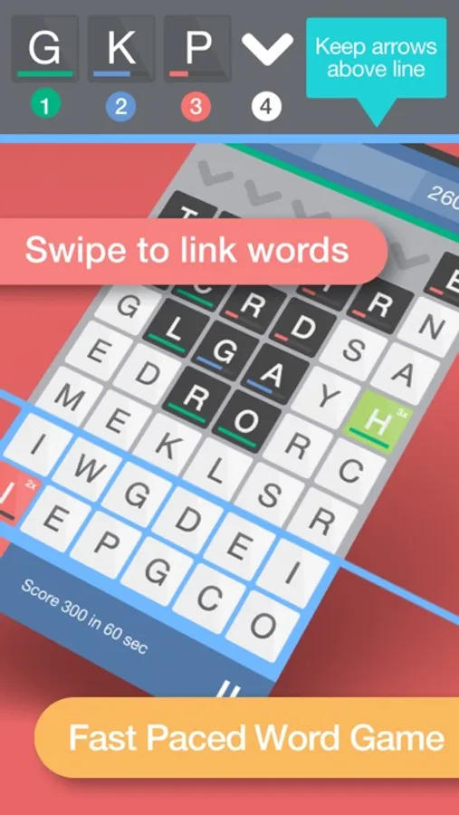 New letters drop in as you add words and convert to arrows that can't drop below the blue line or its game over!