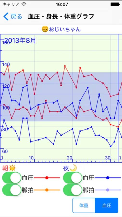 また、日々の血圧・脈拍数・身長・体重を入力することで、毎日の変化をグラフで見たり、血圧分布図を表示させることができますので、食事計画や主治医との相談にご活用いただけます。