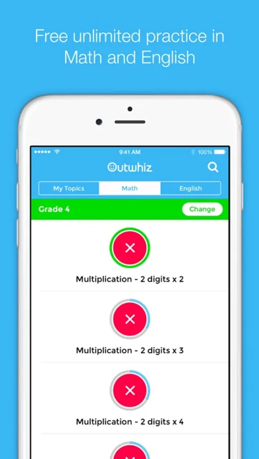 * PARENT INSIGHTS: Get insights into your child’s learning progress, accuracy and habits, available at http://outwhiz.com website. Basic analytics available for free. Premium version available via subscription.