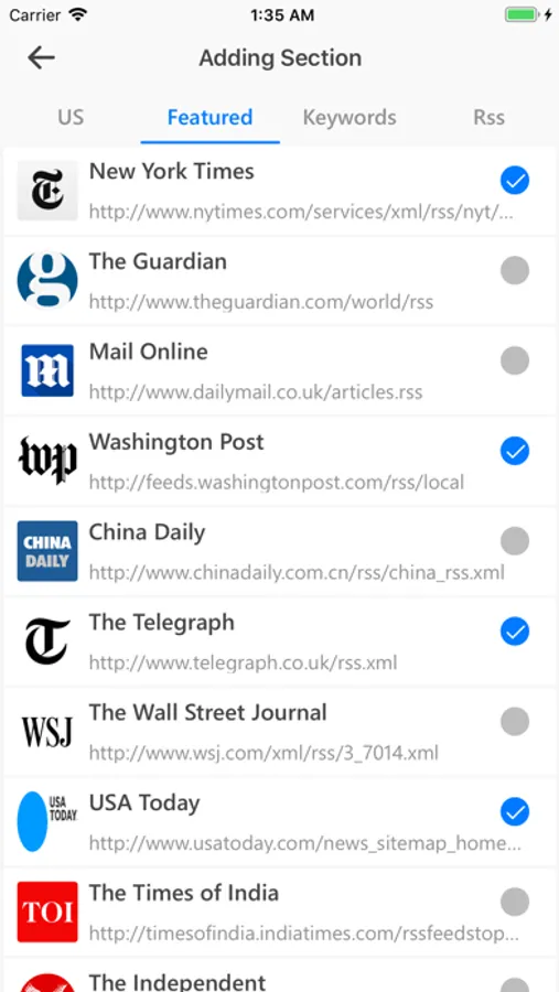 + Featured Sites: this pre-built collection offers most popular news publications around the world, for quick subscribing your daily papers.