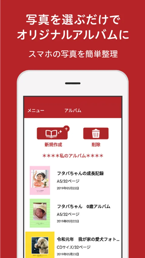 「Mage+ 写真整理アプリ」は“見やすい、分かりやすい”“カンタン操作”であなただけのオリジナルアルバムが短時間で完成します。お子様やお孫様の成長の記録としてもぴったりです。。