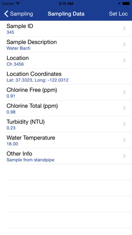 Sampling – Records of each sample are taken with chlorine and turbidity levels, gps is utilised to position each sample taken and the point they are taken to.
