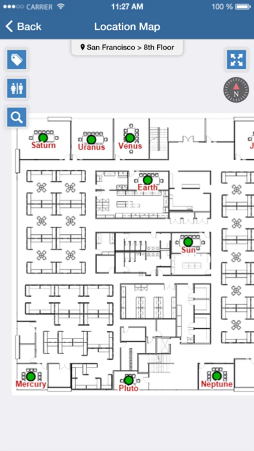 - Locate conference rooms, people, printers, and other points-of-interests on digital building floor maps with fluid zoom/pan functions