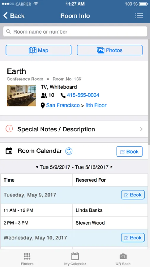 - Book conference rooms, add meeting attendees, and check their availability directly from this app