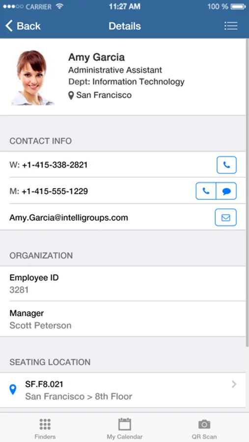 - Find employees and their contact information, and locate their seating locations on floor maps