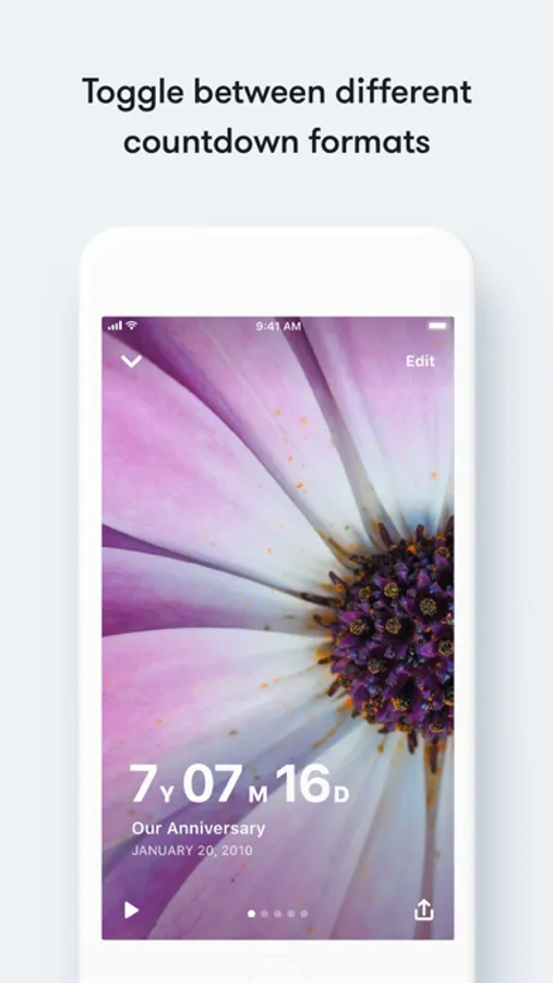 - Toggle between time in days, y/m/d, and h/m/s with a single tap in each event