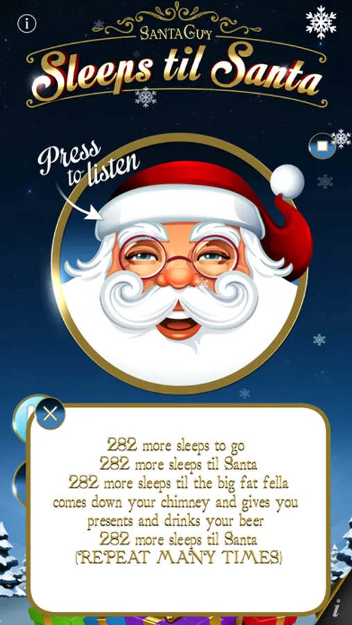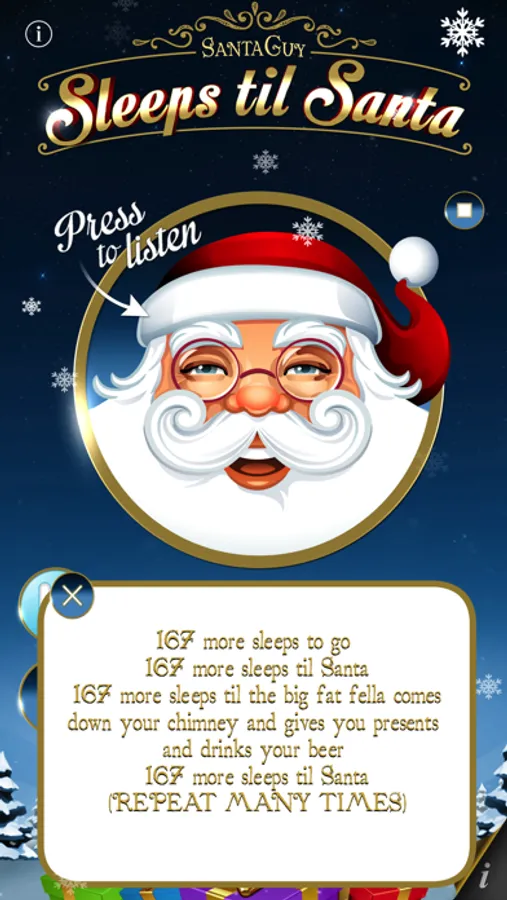 Yes really… “x more sleeps til the big fat fella comes down you chimney and gives you presents and drinks your beer… x more sleeps til Santa.”