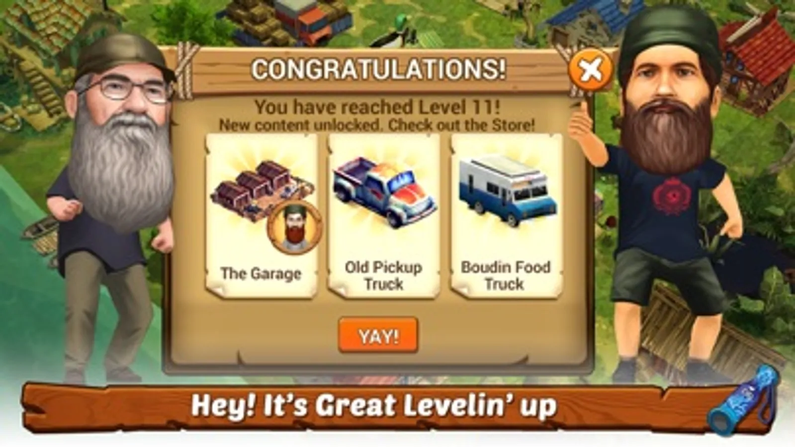 Hear your Duck Call and start building your Factory. Earn money by making duck calls and doing playful shenanigans. Expand your empire by building homes for the whole Robertson community.