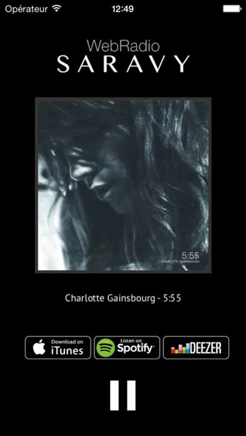 Saravy, une application permettant d'écouter la webradio Saravy, de connaître tous les titres écoutés et de les acheter directement sur iTunes ou les écouter sur Deezer ou Spotify.
