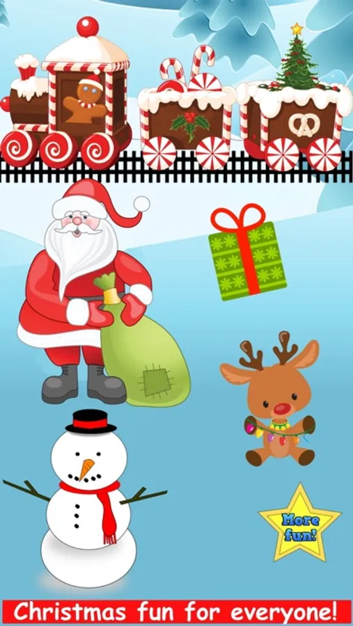 Sound the Christmas train horns and whistles and have a delight-filled time playing with trains, reindeer's, and Santa games in the Christmas Train Snowman Games App, where learning through play encourages you to have fun while sharpening imagination, skills, and letter recognition. If you love Christmas and Santa and fun this is the app for you!