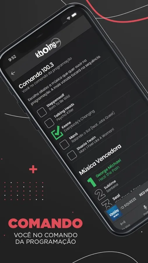 O aplicativo de rádio, músicas, playlists e podcast da rádio oficial Kboing FM 100.3