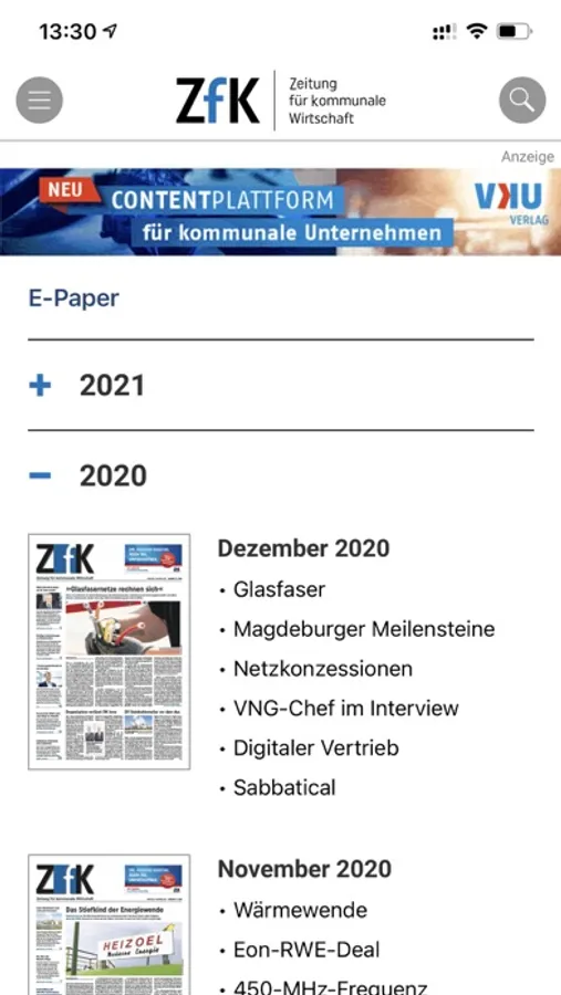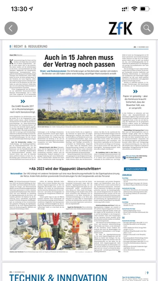 Ergänzt um das reichweitenstarke Newsportal zfk.de und den werktäglichen Newsletter „ZfK Morning Briefing“ ist die ZfK das unverzichtbare Medium der kommunalen Wirtschaft. Und mit dem wichtigsten Stellenmarkt der Branche unterstützt die ZfK auch bei der Vorbereitung auf die Zukunft.