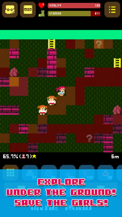 You'll have to explore the whole underground and rescue every buried girl in order to get to the next dungeon.
