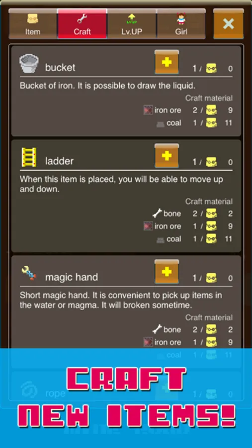 - If you find a new item, please check the Craft screen. You may be able to create new items.