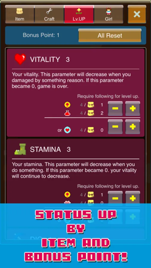 - Challenging monsters without leveling up is dangerous. I recommend to level up 'Attack' right away.