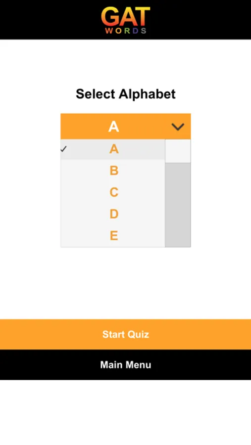 - By Alphabet A-Z quiz : Select start alphabet A-Z