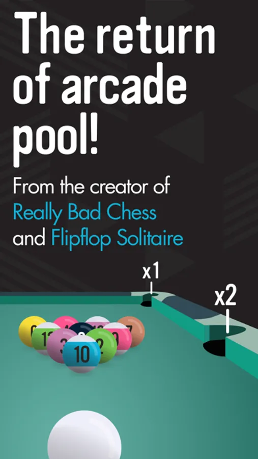 The return of arcade pool from the creator of Really Bad Chess and Flipflop Solitaire.