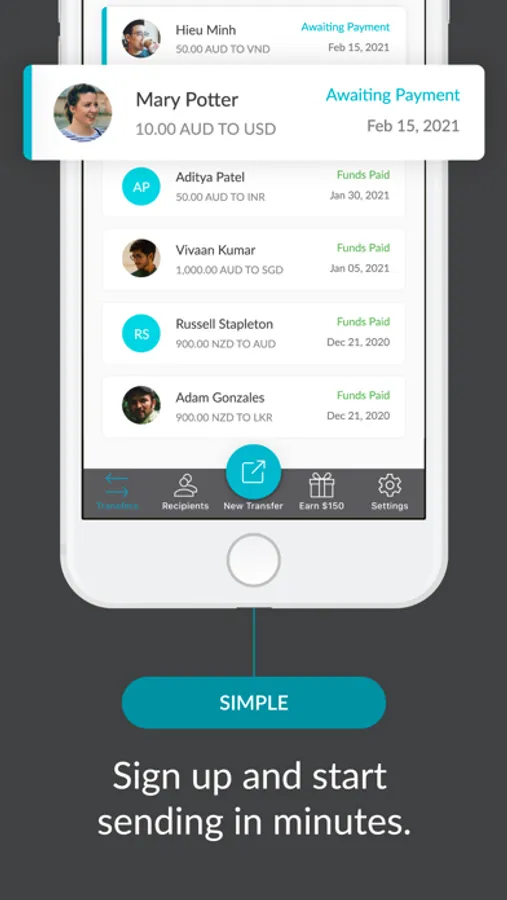 - Track the status of your transfer, from creation through to when your beneficiary is paid.