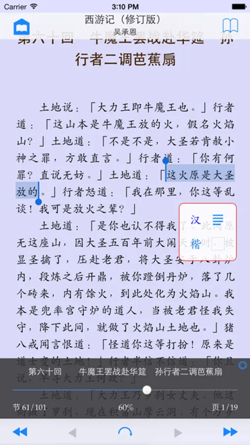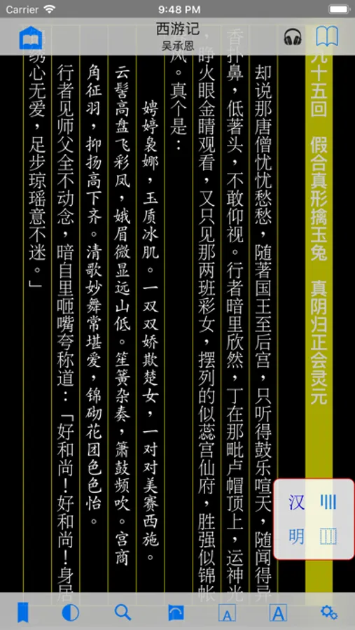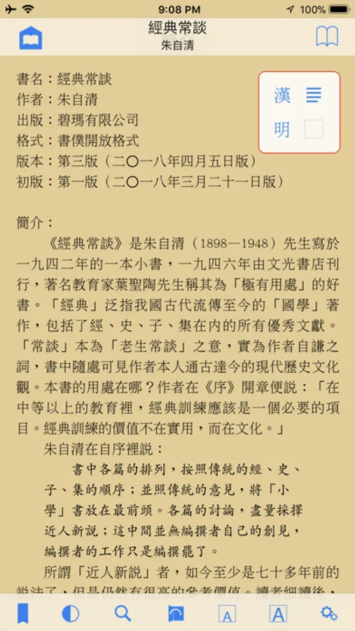 ⑥ 控制界面自動適應橫排與豎排:跳頁滑桿、書頁底部顯示閱讀進度幼線、翻頁手勢等的前進後退方向都一起隨橫排豎排的切換而變