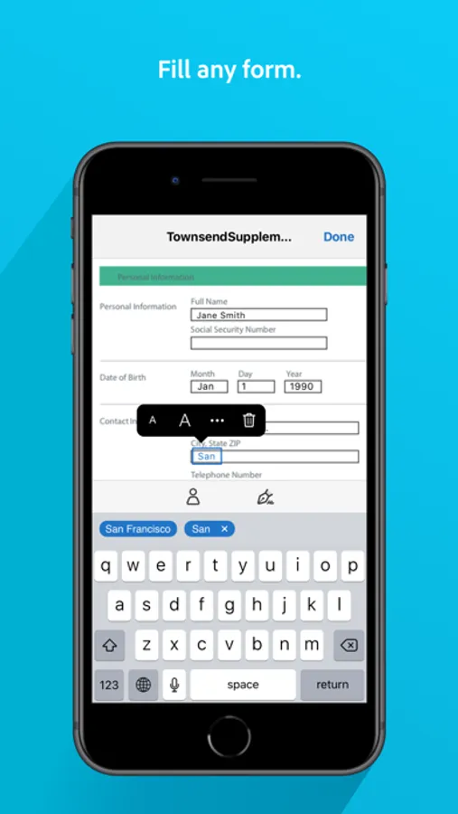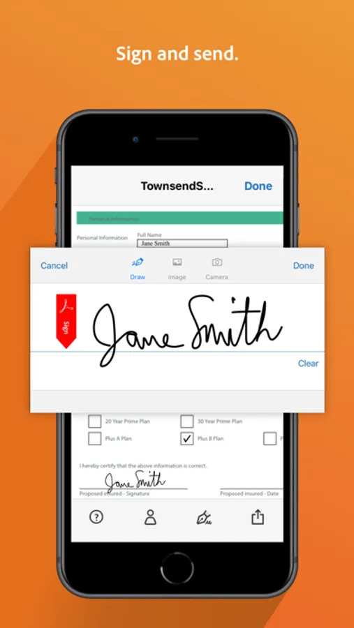 The free Adobe Fill & Sign app lets you fill, sign, and send any form fast. You can even snap a picture of a paper form and fill it in on your phone or tablet. Then e-sign and send. No printing or faxing needed.