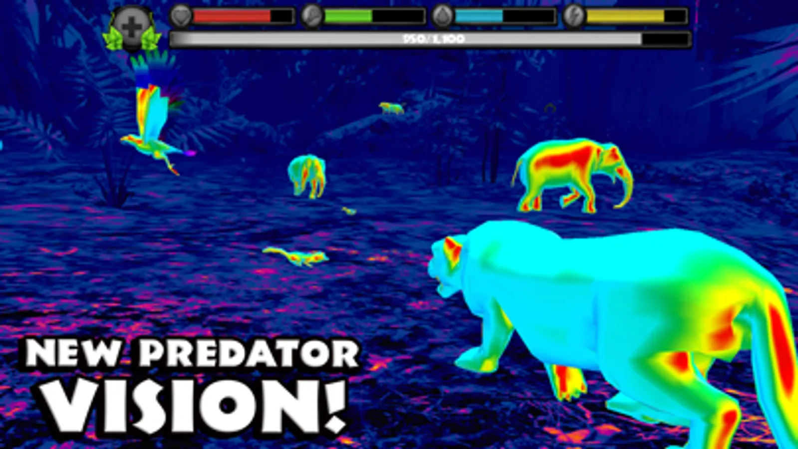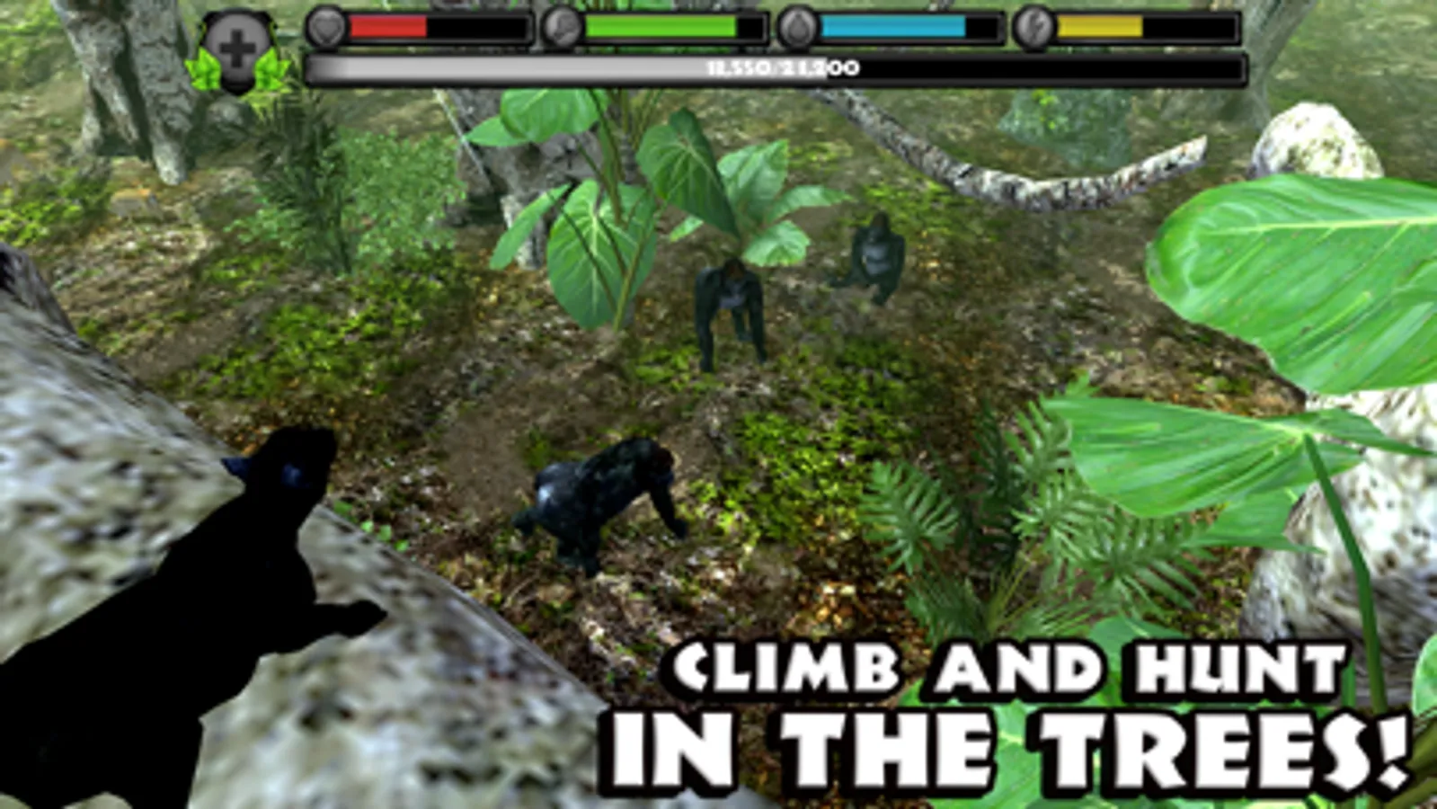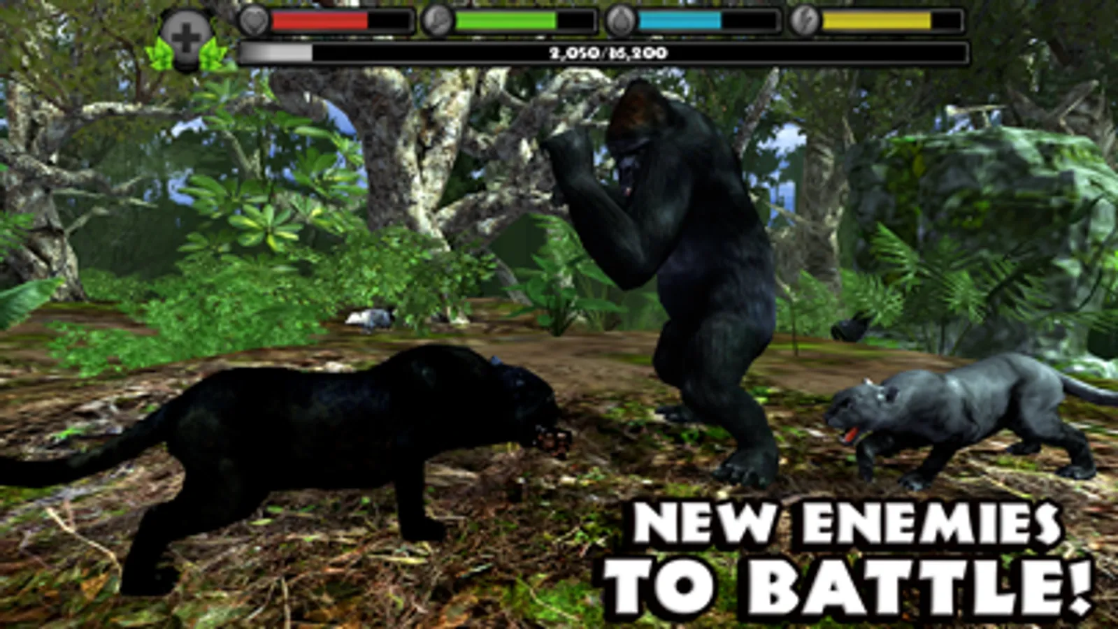 Gain experience by defeating dangerous predators, eating small animals, and completing missions. Level up your panthers to increase their health and attack damage, unlock new fur colors, and gain new powers like Predator Vision!