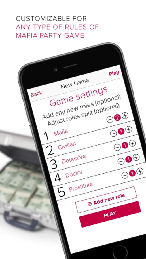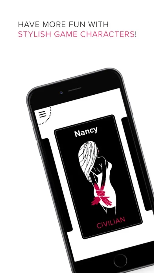 Start the game in 10 seconds – just press “Quick start” and set the number of players. Players will understand their roles by taking device and opening their card in the app.