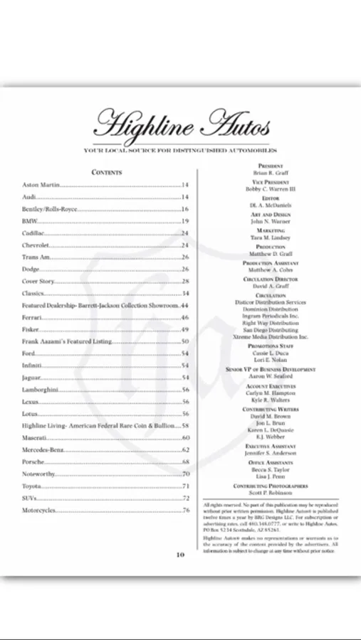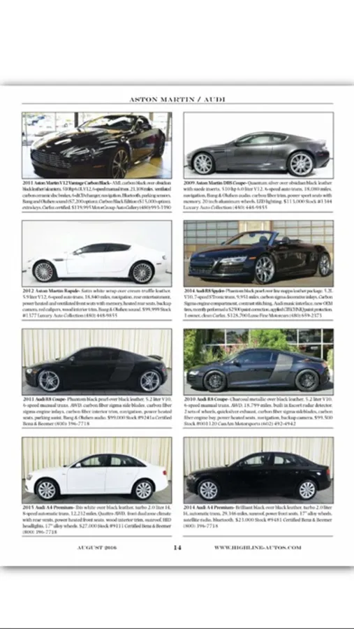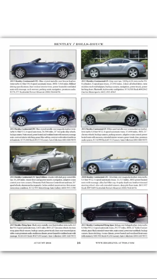Highline Autos Magazine is a full color glossy magazine that serves as a tool for those interested in buying, selling, or browsing such vehicles as well as providing content on the latest luxury vehicles and available resources. Editorial features include GreatGarages, Highline Living, Noteworthy, Readers Rides, etc.