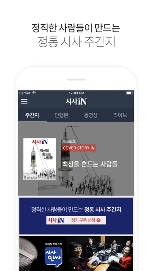 • 정기구독 : 디지털 주간지 《시사IN》을 구매 할 수 있습니다.